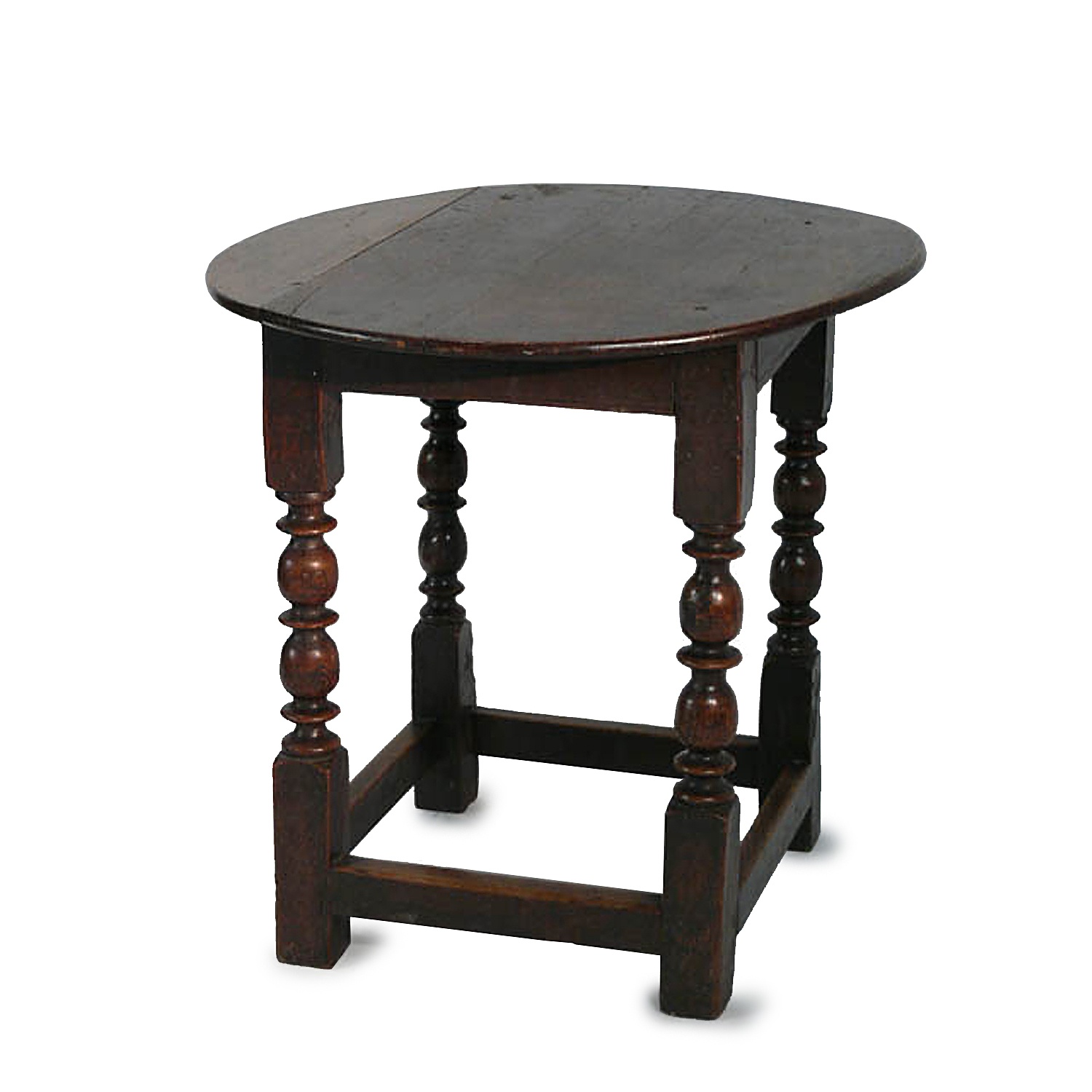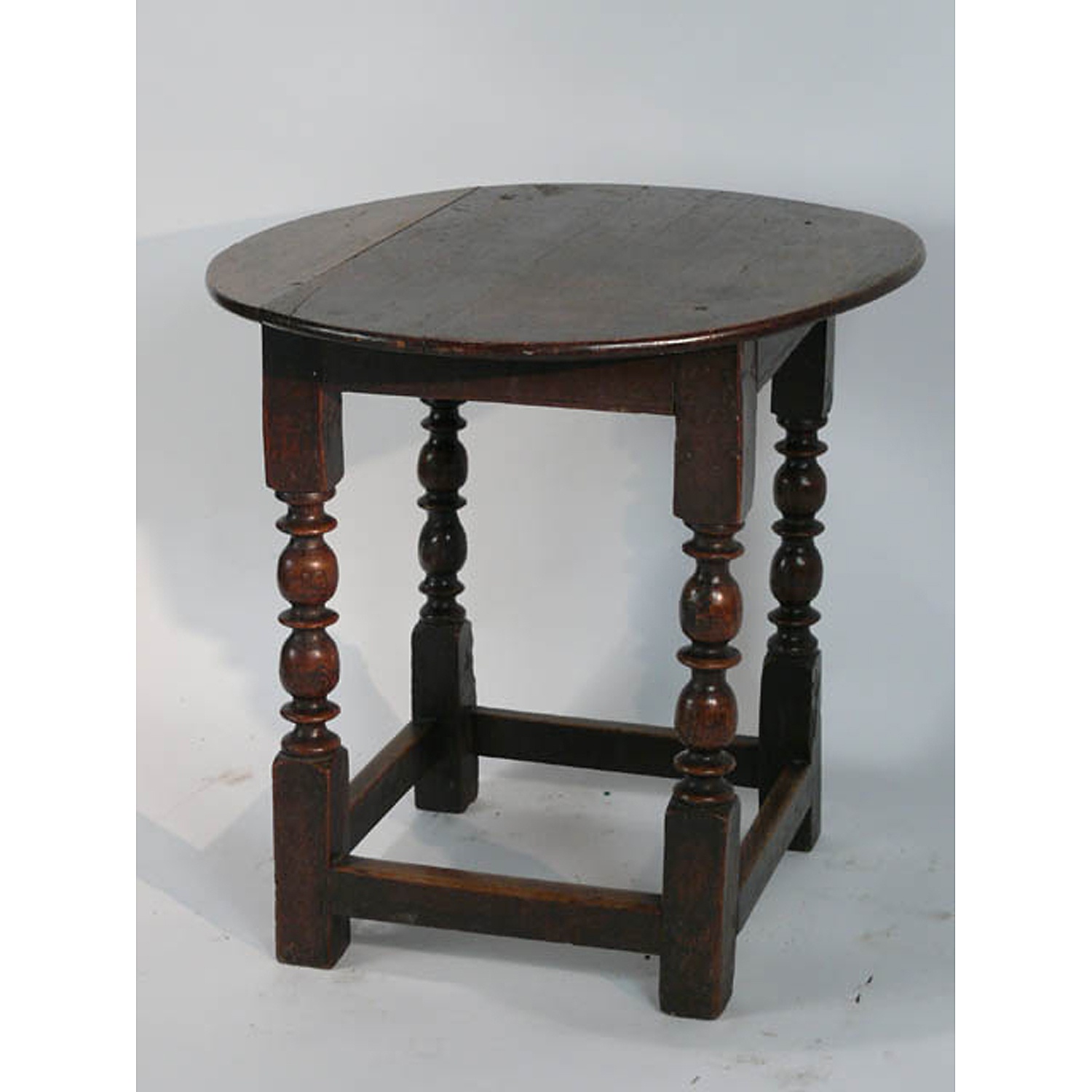 17TH CENT. ENGLISH DARK OAK CIRCULAR OCCASIONAL TABLE WITH TURNED LEGS 65 CM DIAM. 64 CM HIGH