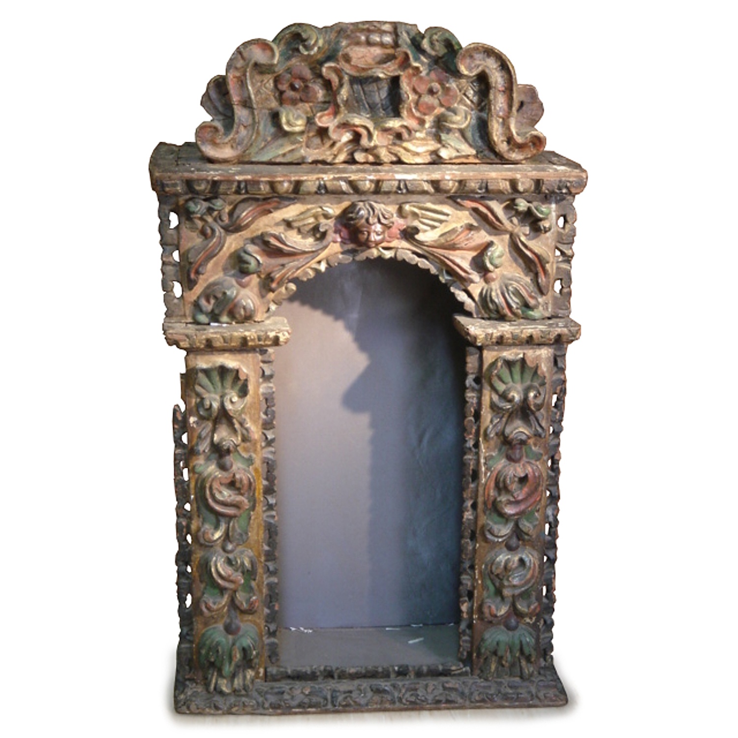 17TH CENT.SPANISH CARVED AND GILDED NICHE