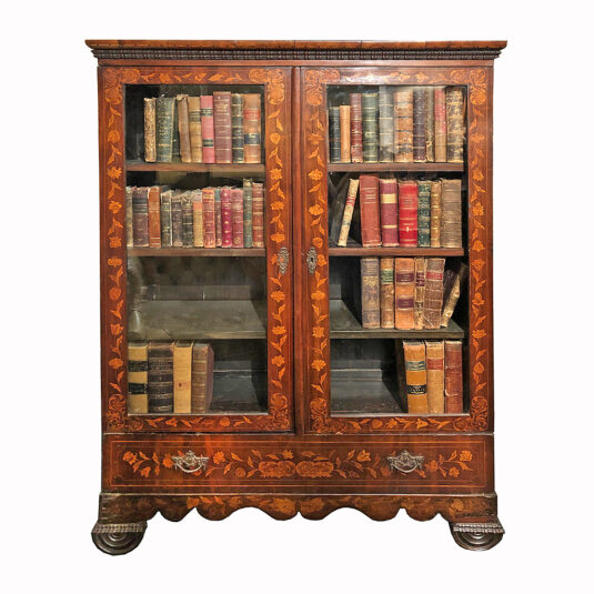 18TH CENT. DUTCH FLORAL MARQUETRY INLAID GLAZED CHINA CABINET 155 CM HIGH 105 CM WIDE 37 CM DEEP