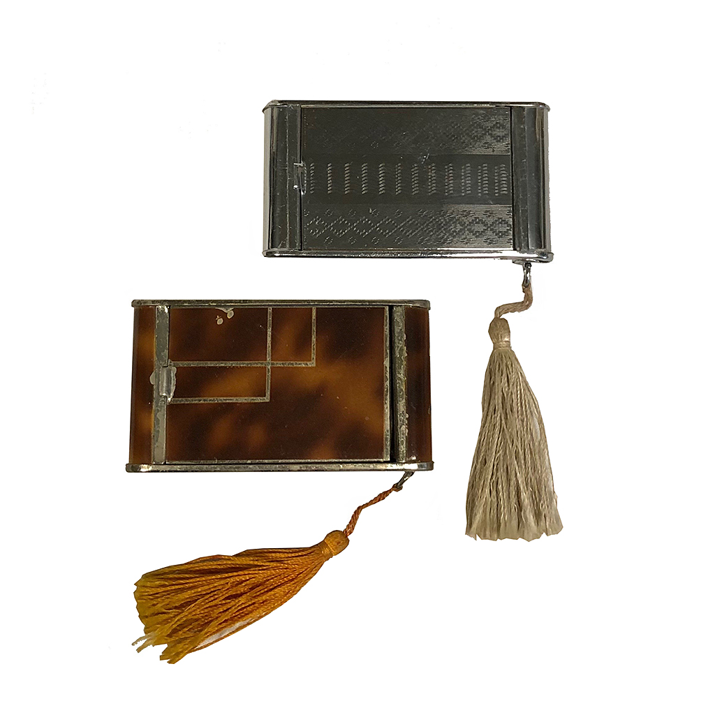 1920 - 1940 SMALL RECTANGULAR COMPACT WITH LIPSTICK INSERT AND TASSEL