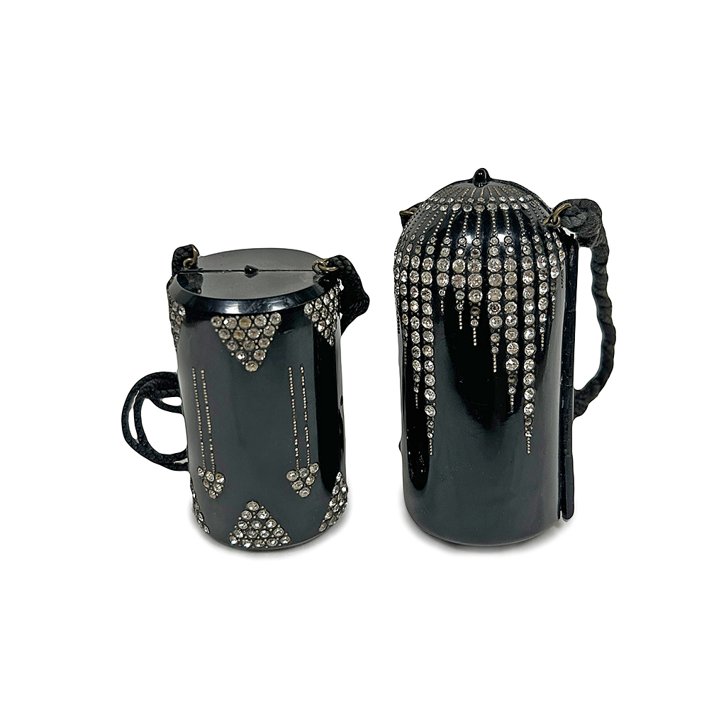 1920's BLACK CELLULOID / BAKELITE DANCE PURSE WITH PASTE DECORATION