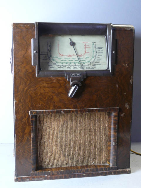 1930 -1940'S RADIO COSSOR UPRIGHT CASE BURR WALNUT VENEER 39 CM WIDE