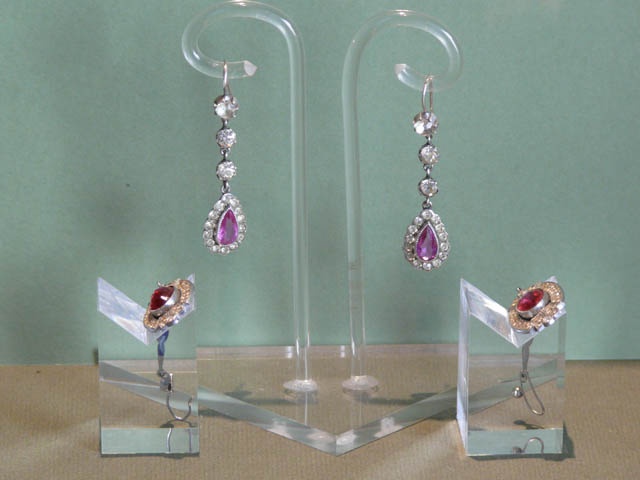 1930'S DROP PASTE EARRINGS WITH PINK CENTRE STONE