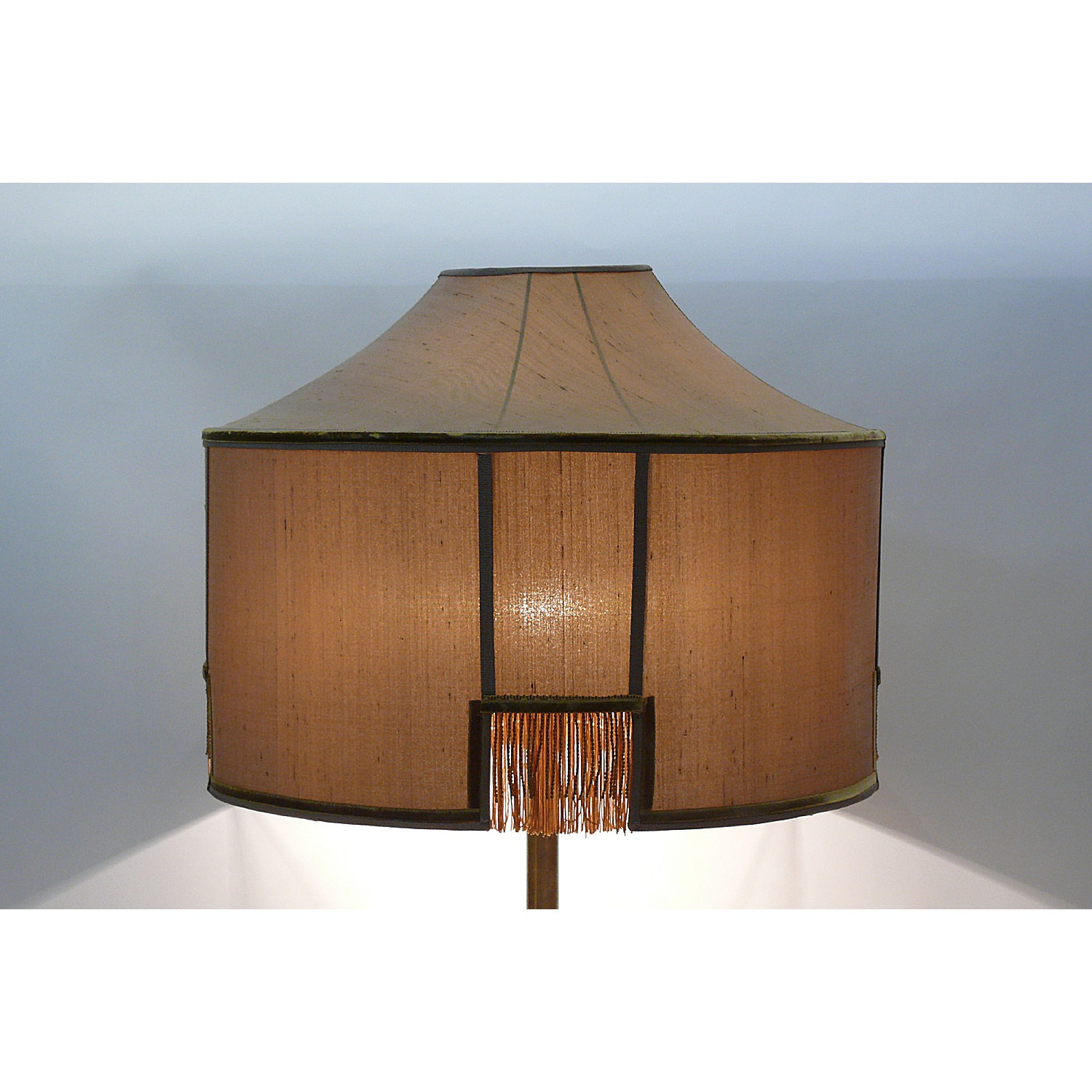 1930'S STYLE LARGE LAMPSHADE DARK GOLD SILK OVER PARCHMENT 50 CM DIAM. (X2)