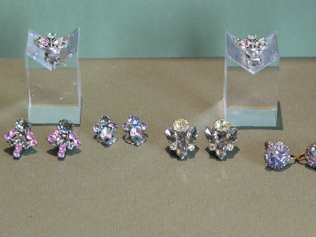 1940'S / 1950'S SMALL CLIP MULTI COLOURED PASTE EARRINGS