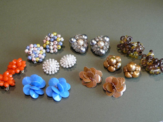 1950'S PLASTIC BEAD CLIP EARRINGS