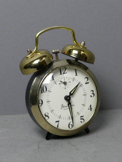 1960'S ALARM CLOCK 16 CM HIGH 12 CM WIDE 8 CM DEEP