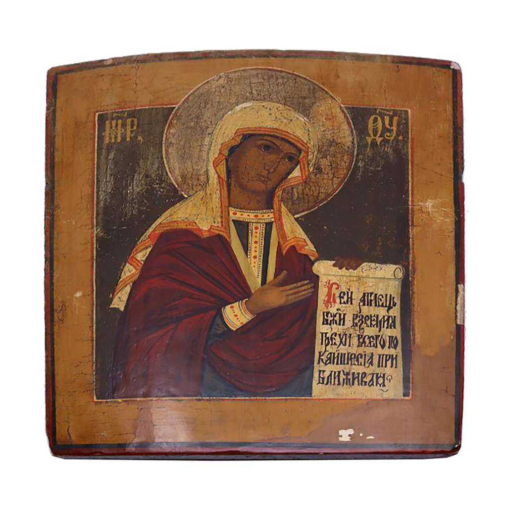 19TH CENT ICON OIL ON PANEL THE DESSIS MADONNA 25.5 CM X 30.3 CM