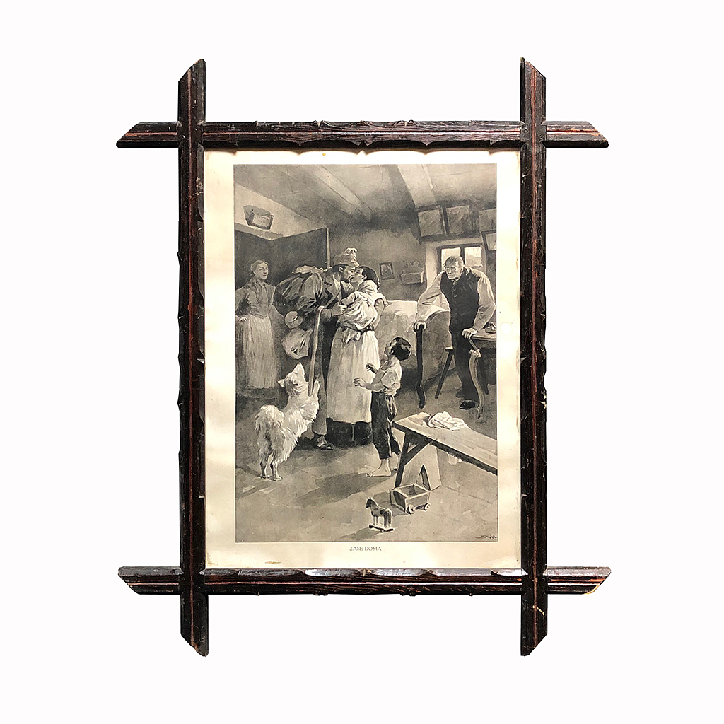 19THC BOHEMIAN PRINT /i ZASE DOMA /i (AT HOME AGAIN) IN A CARVED OAK OXFORD FRAME 21/i X 16/i