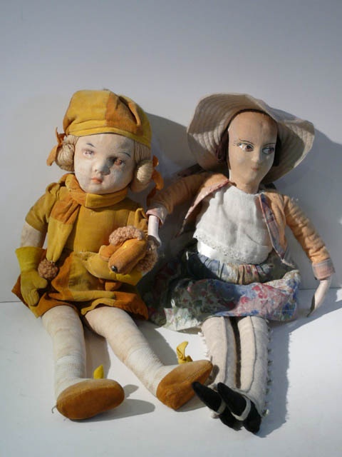 1930'S FABRIC DOLL WITH FLORAL SKIRT AND HAT 60 CM LONG
