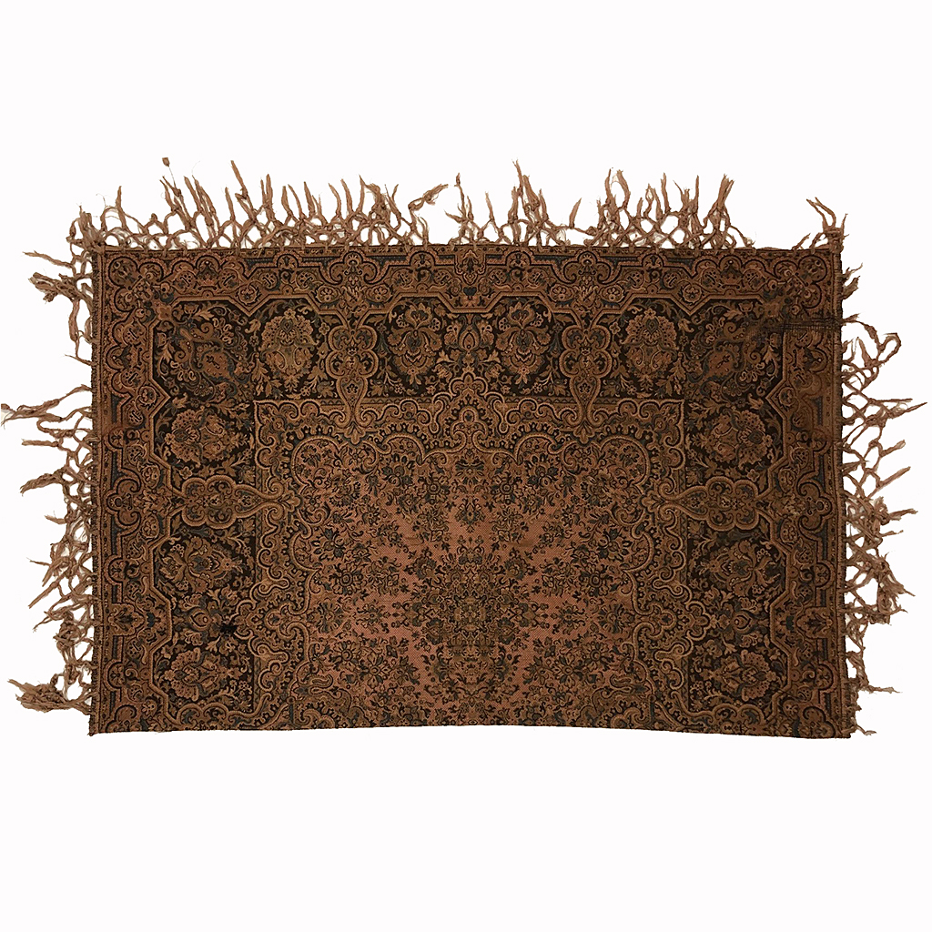 4'3/iX 5'6/i PINK BLUE WOVEN FLORAL TABLECLOTH KNOTTED FRINGING