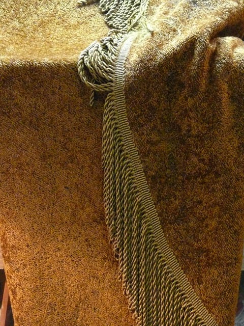 4'6" DIAM GOLD CIRCULAR CHENILLE TABLECLOTH WITH FRINGING