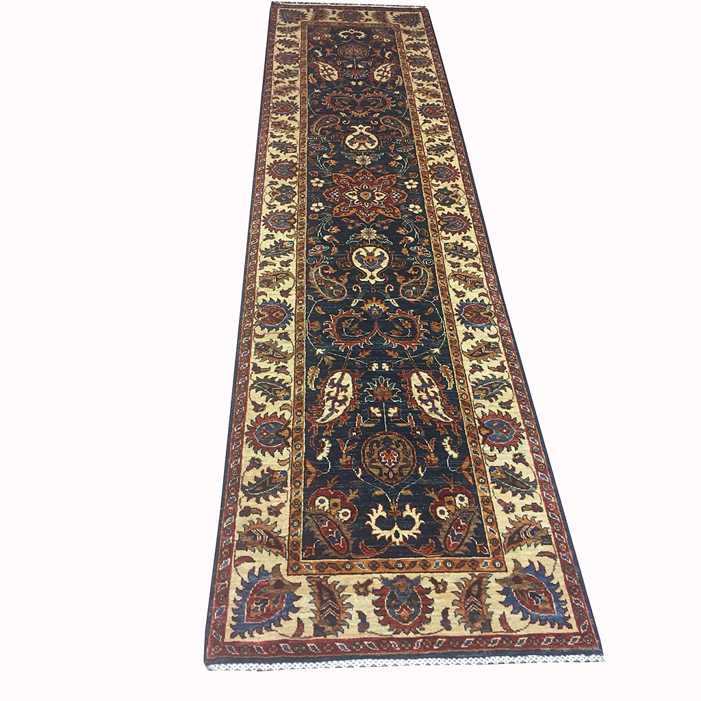 AFGHAN CHOEB RANG RUNNER RUG FLORAL BROWN PATTERN WITH CREAM FLORAL BORDER 9í 10/i X 2í 8/i 298 CM X 81 CM
