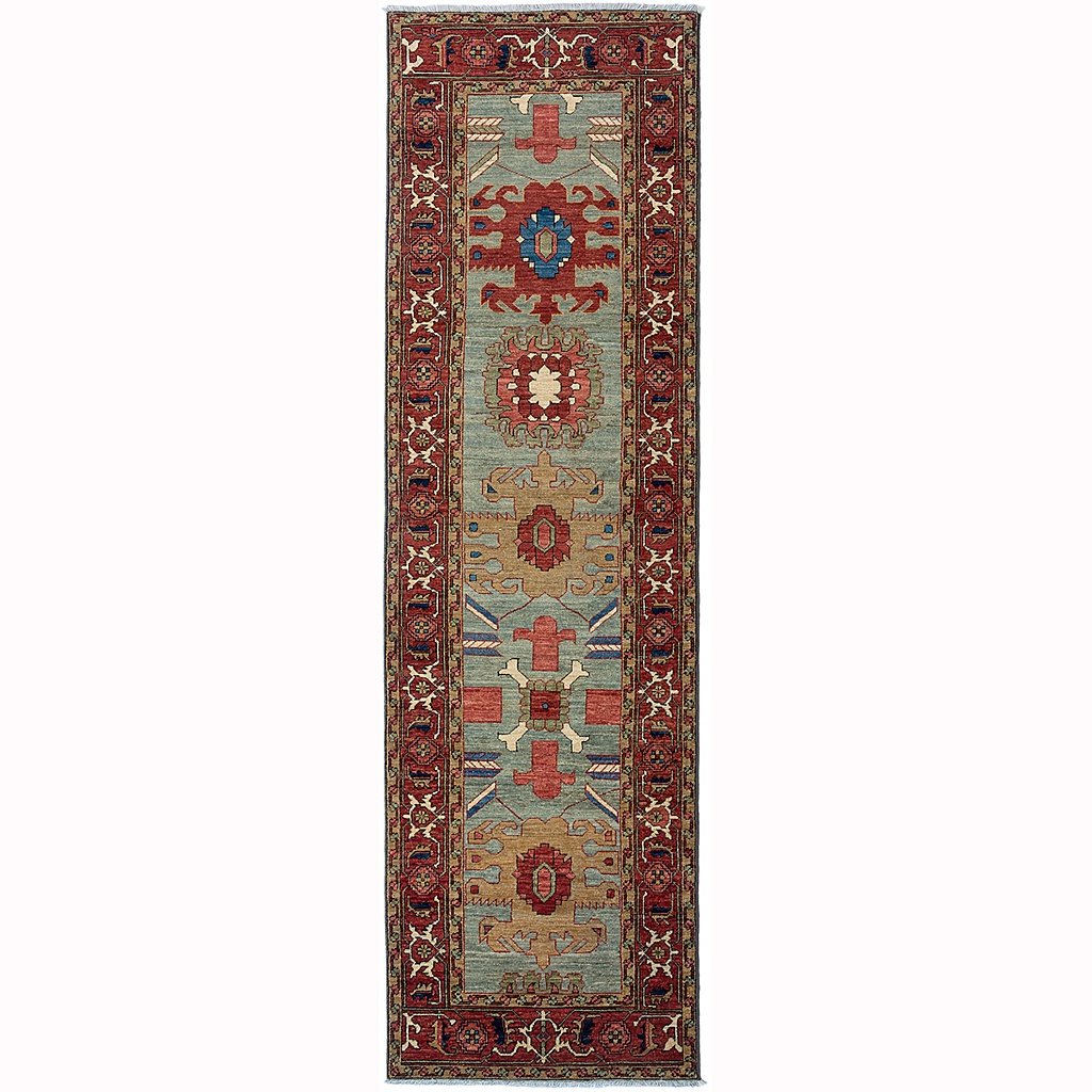 AFGHAN HERIZ RUNNER RUG GREEN CENTRE WITH RUST BROWN BORDER 10’ 1 X 2’ 9 307 CM X 84 CM (X2)