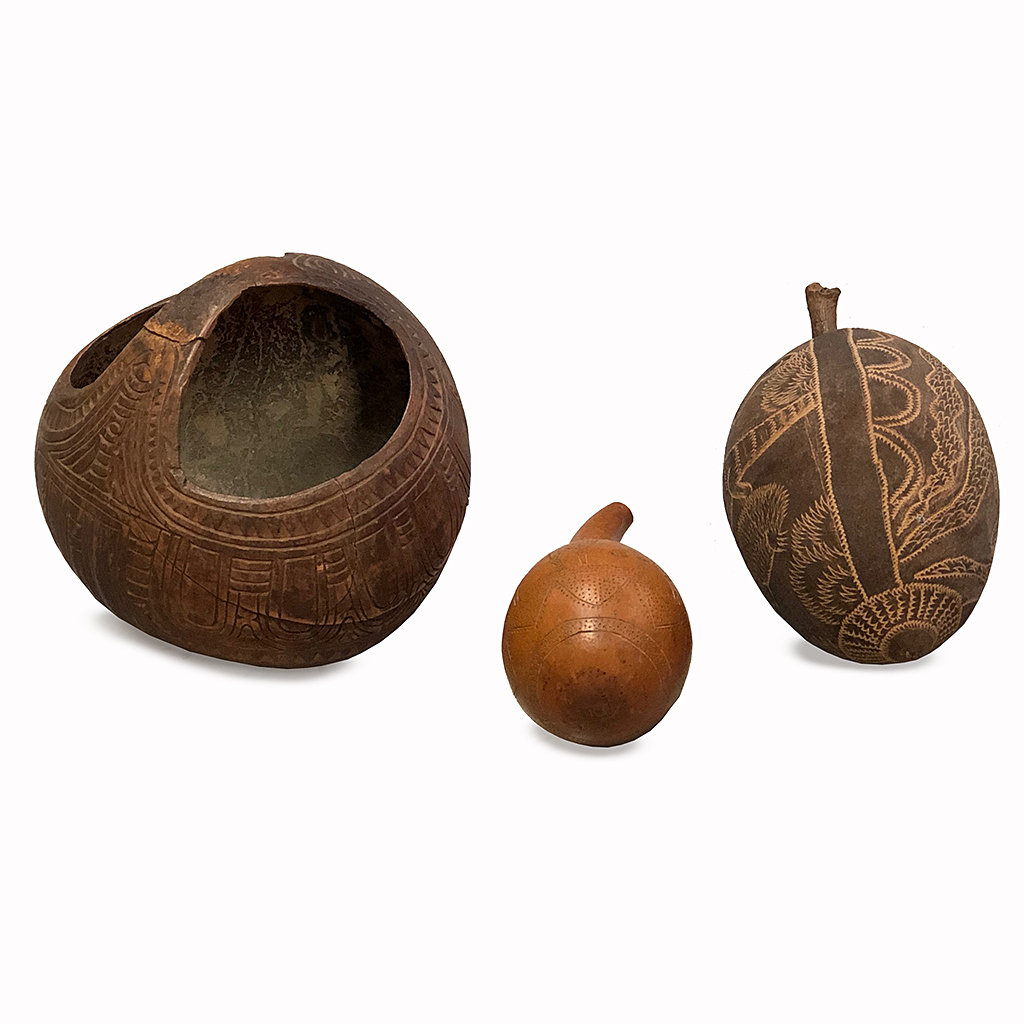 AFRICAN CARVED WOODEN TRIBAL GOURD (X3)