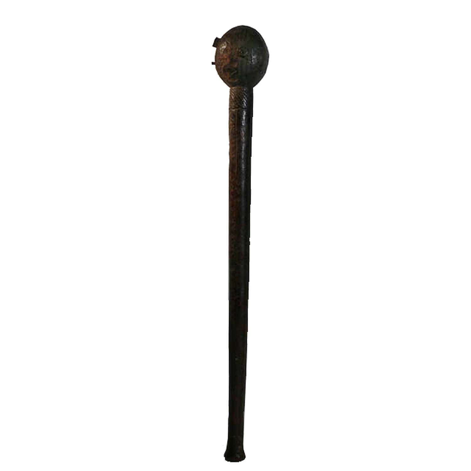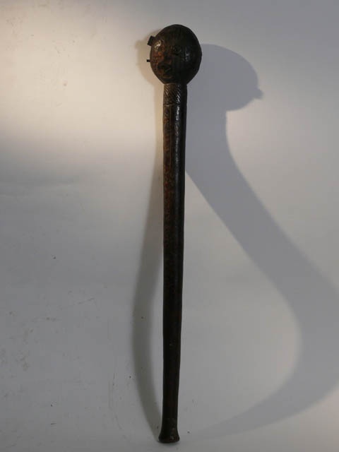 AFRICAN TRIBAL STAFF HEAD / CLUB CARVED EBONY