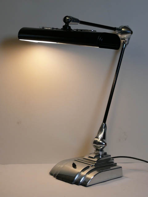 AMERICAN DESK LAMP CHROME AND BLACK BY FLEXO CIRCA 1950 60 CM HIGH 40 CM WIDE (X2)