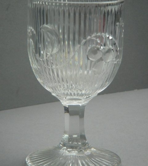 AMERICAN RIBBED WINE GLASS ENGRAVED BELL FLOWER