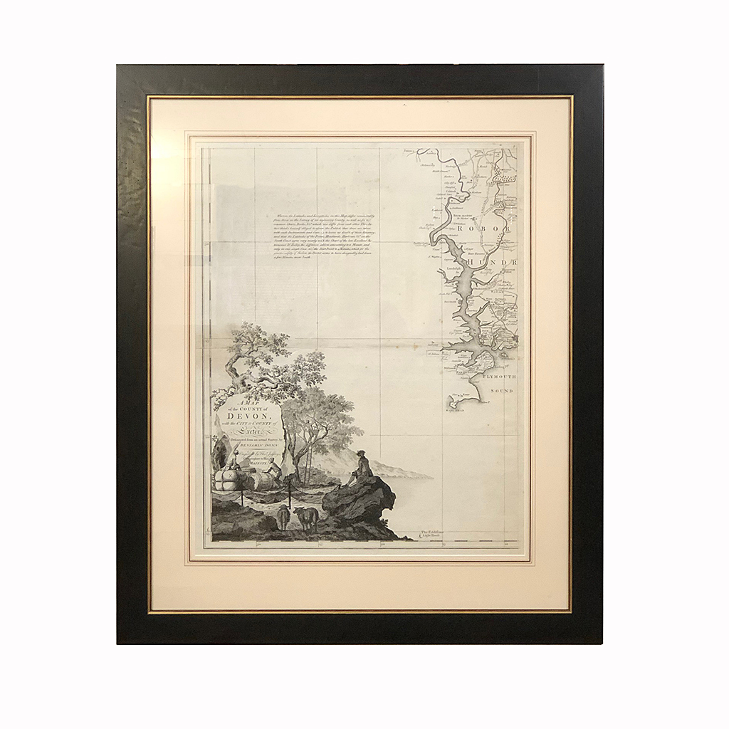 ANTIQUE MAP OF DEVONSHIRE BY BENJAMIN DONN CIRCA 1765 IN A BLACK FRAME