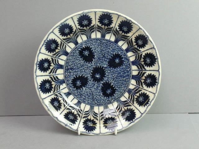 ANTIQUE MINTON ASTOR DESSERT PLATE BLUE AND WHITE 23 CM DIAM. (X3)