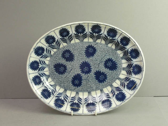 ANTIQUE MINTON ASTOR MEDIUM SERVING PLATTER BLUE AND WHITE