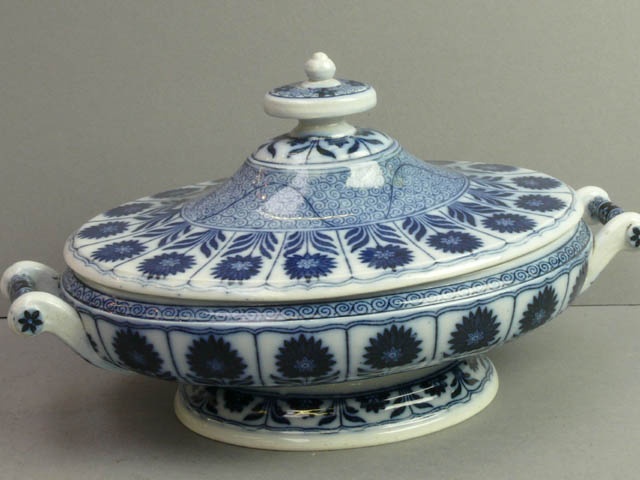 ANTIQUE MINTON ASTOR OVAL VEG TUREEN AND LID BLUE AND WHITE 32 CM (X3)