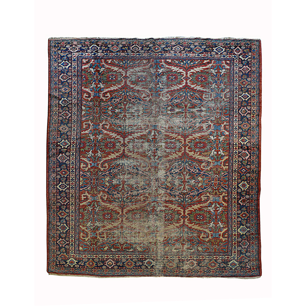 ANTIQUE PERSIAN MAHAL WORN CARPET NAVY AND RED 11í 9/i X 8í 11/i 358 CM X 270 CM