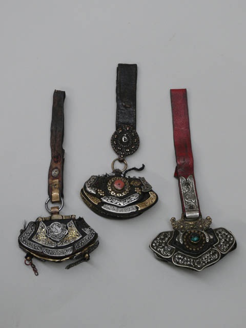 ANTIQUE TIBETAN SILVER MOUNTED FIRE STRIKER POUCH / PURSE CHAKMAK