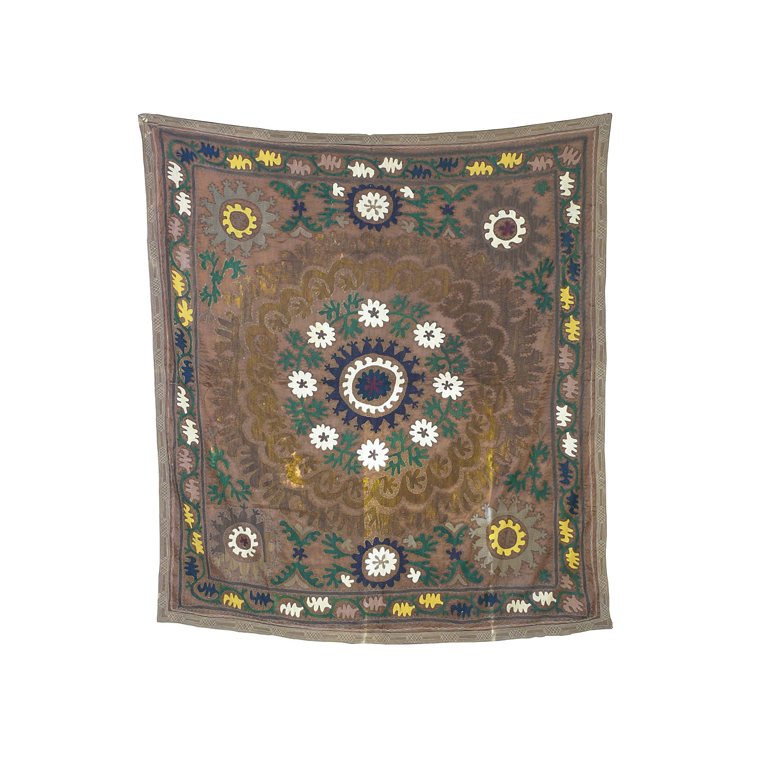APPLIQUE BROWN MULTICOLOURED ETHNIC TABLECLOTH 5'9/i X 5'1/i