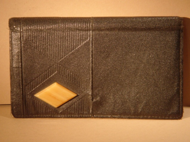 ART DECO EMBOSSED BLACK LEATHER CLUTCH HANDBAG WITH DIAMOND AMBER PLAQUE 22 CM WIDE