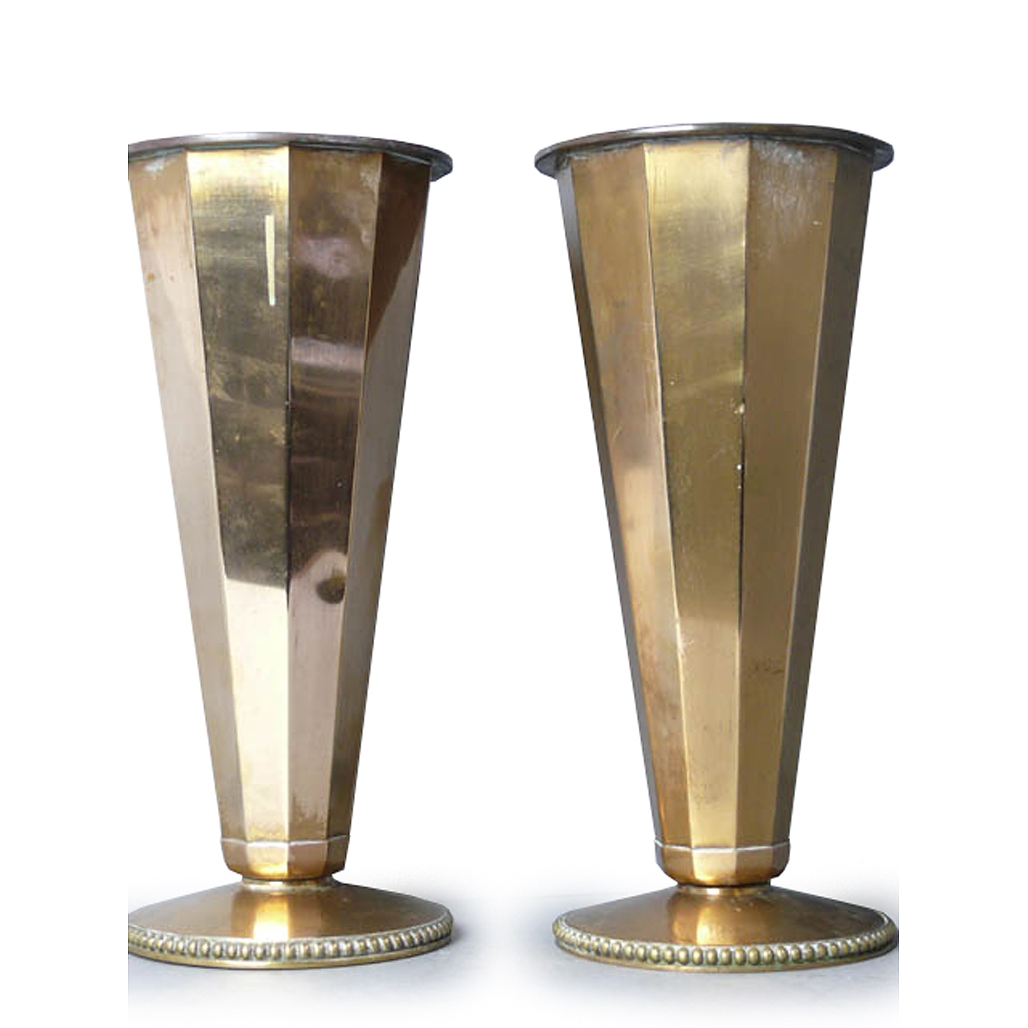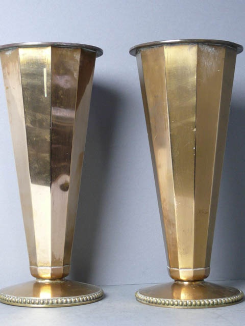ART DECO HEXAGONAL FLARED BRASS VASE 11/i HIGH (X2)