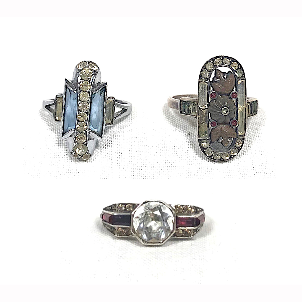 ART DECO PASTE LADIES RING ON SILVER