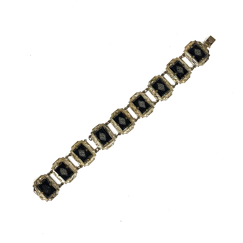 ART DECO SILVER PLATED AND JET LINK BRACELET
