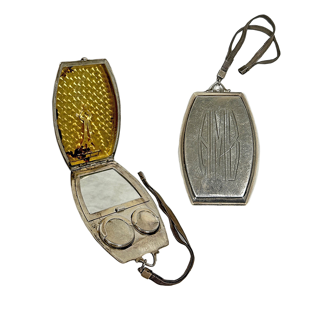 ART DECO SOVEREIGN CASE WITH POWDER COMPARTMENT AND MIRROR MONOGRAMMED "AMB" AND "1923"