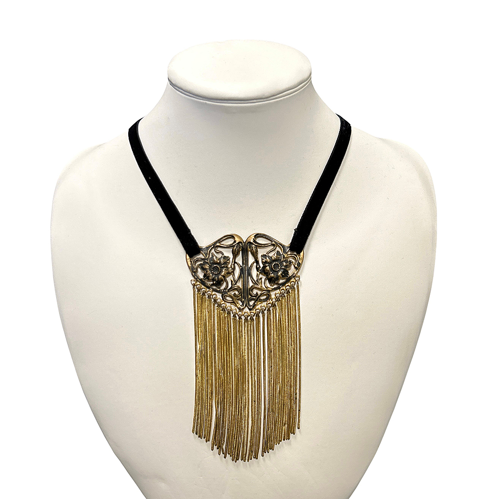 ART NOUVEAU PENDANT NECKLACE ON BLACK VELVET RIBBON AND TASSELS
