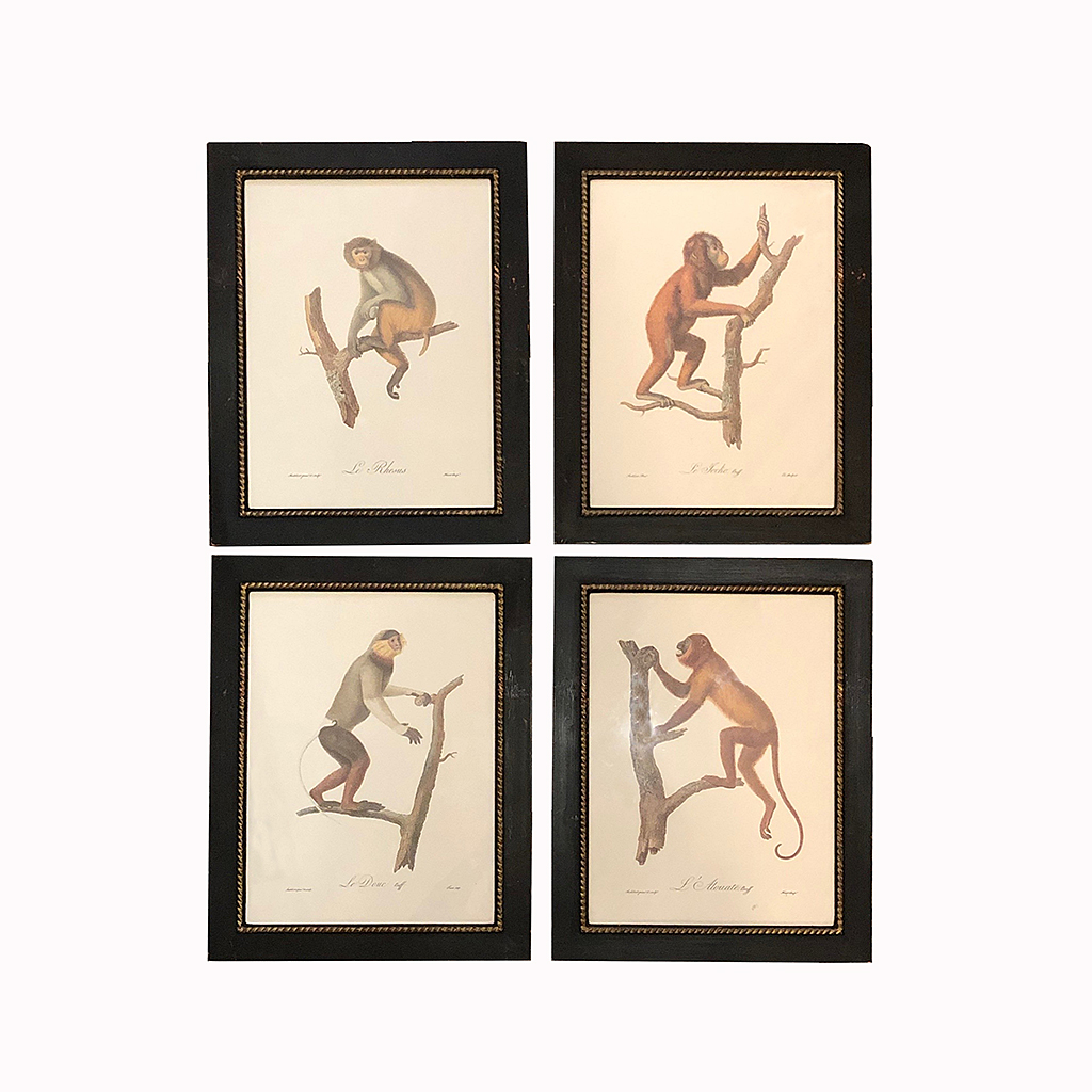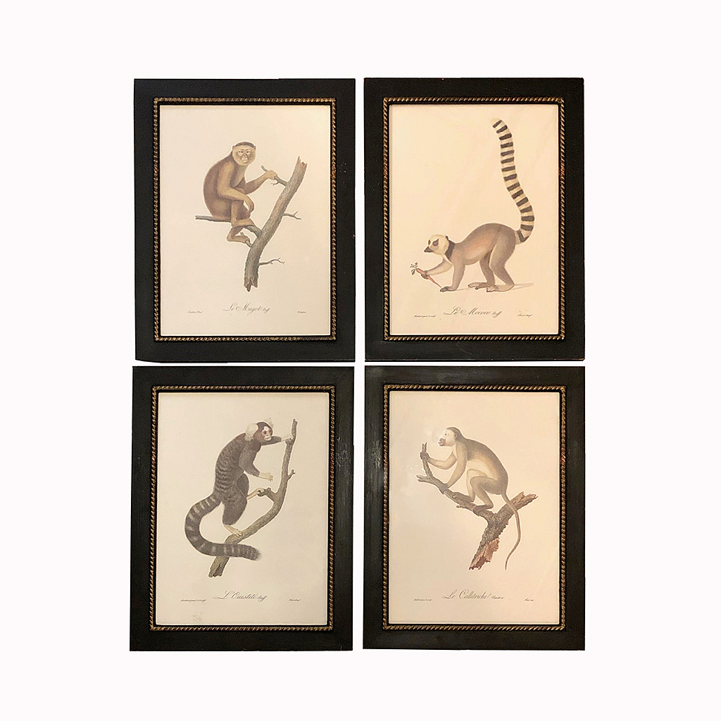 AUDUBERT COLOURED ENGRAVING OF MONKEY IN AN EBONY AND GILT FRAME 53 CM X42 CM INC. FRAME (X8)