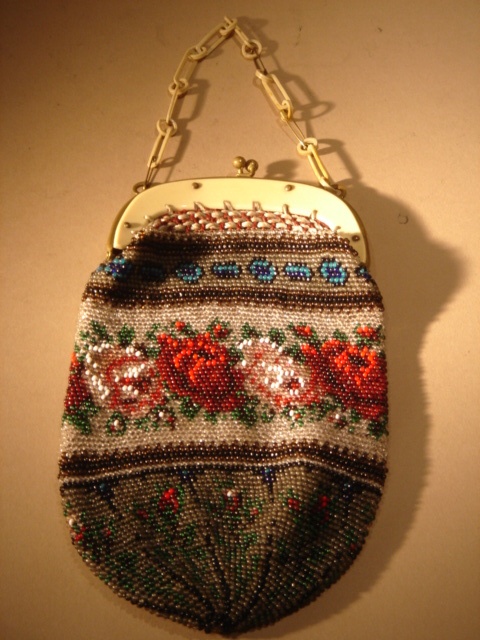BEADED HANDBAG WITH FAUX IVORY TOP AND LINK HANDLE 13 CM WIDE