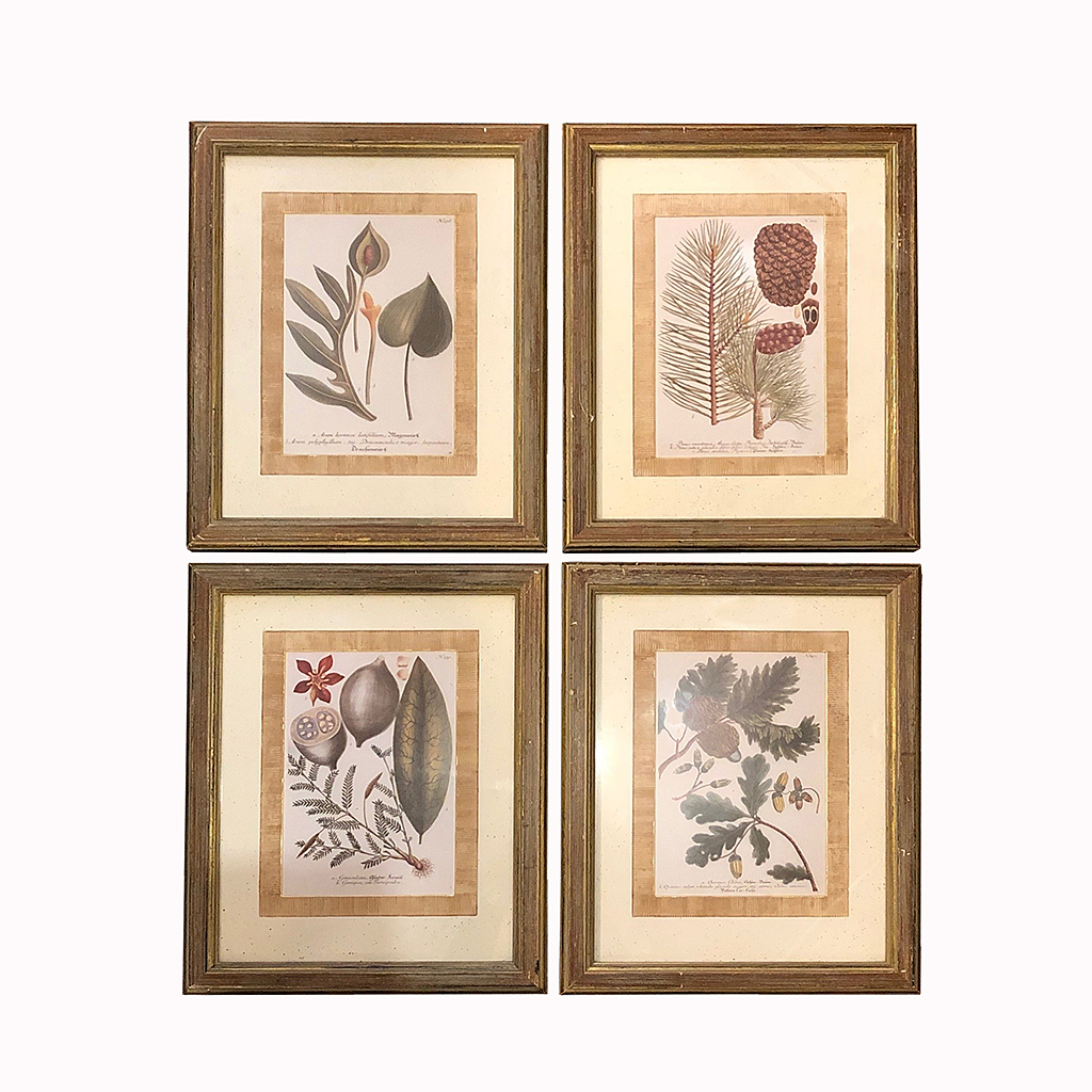 BEIGE FRAMED BOTANICAL AQUA TINT ENGRAVING SPECKLED MOUNT 52 CM X 40 CM INC. FRAME (X4)