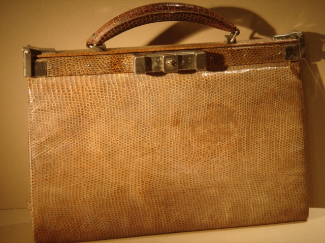 BEIGE SNAKESKIN HANDBAG GLADSTONE TYPE 28 CM WIDE