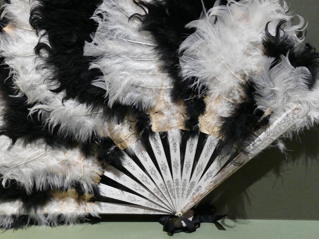 BLACK AND WHITE OSTRICH FAN DECORATED WHITE HANDLE