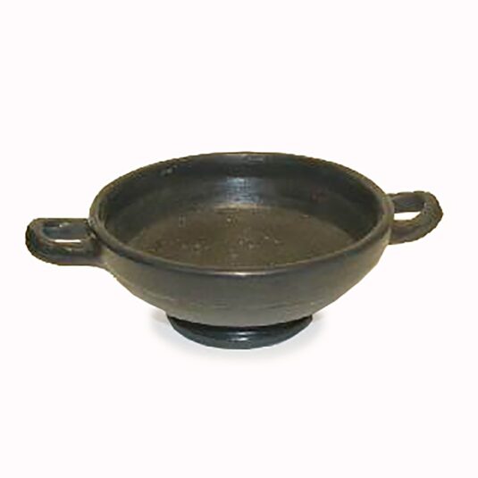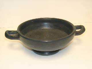 BLACK CERAMIC GRECIAN TAZZA / BOWL WITH TWIN HANDLES 8/i DIAM (X80)