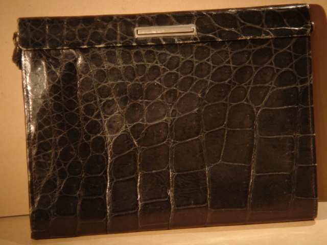 BLACK CROCODILE SKIN CLUTCH HANDBAG 22 CM WIDE
