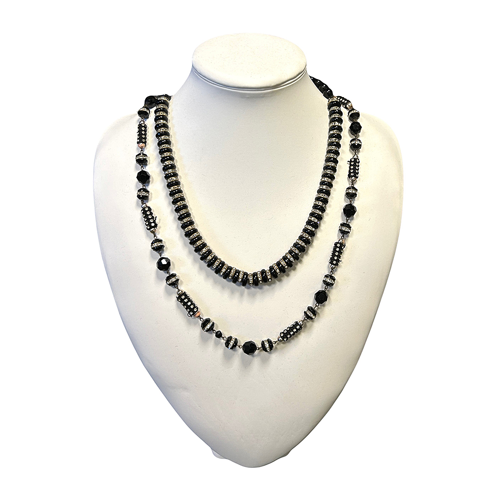 BLACK GLASS BEAD AND PASTE NECKLACE