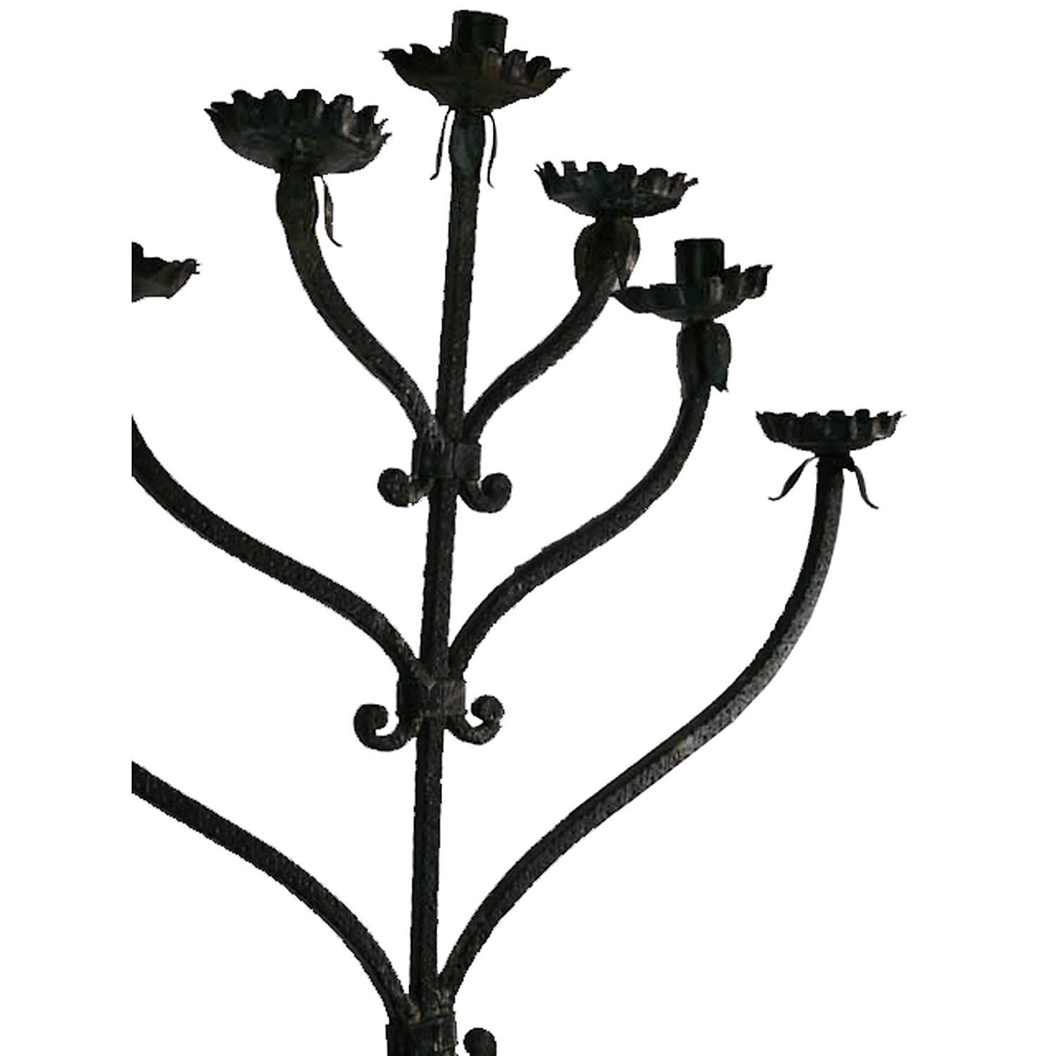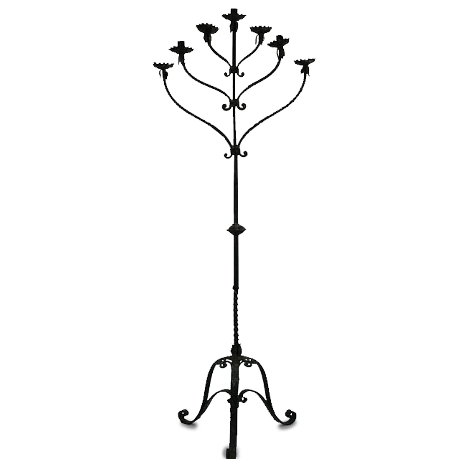 BLACK IRON SEVEN BRANCH FLOOR STANDING CANDELABRA 6'7/i HIGH