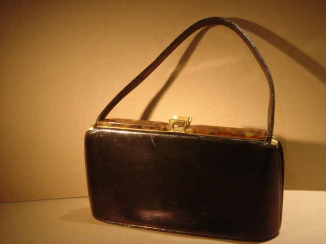 BLACK LEATHER AND FAUX TORTOISESHELL HANDBAG 26 CM WIDE