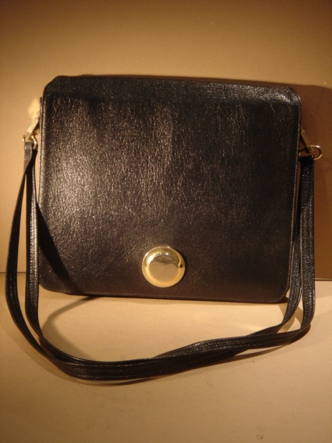 BLACK LEATHER HANDBAG 24 CM WIDE