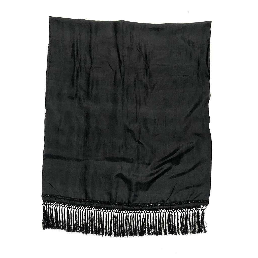 BLACK SILK STOLE WITH BLACK BEAD BORDER AND FRINGING 3'7'' LONG / 1'1'' WIDE