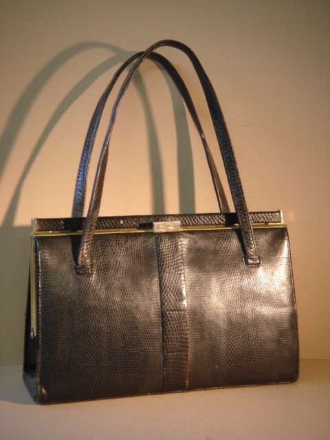 BLACK SNAKESKIN MAPPIN AND WEBB HANDBAG 24 CM WIDE
