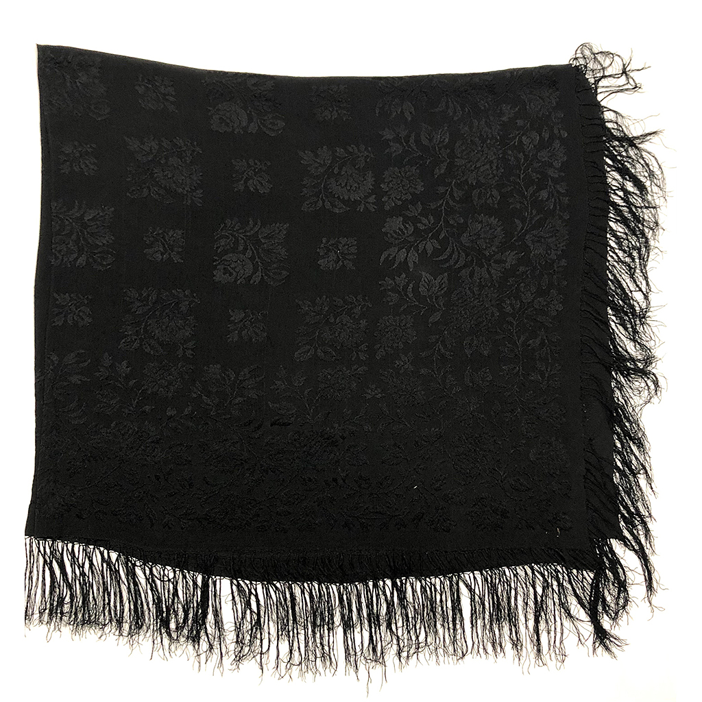 VICTORIAN SQUARE WOVEN SILK DAMASK SHAWL WITH FRINGING 4'3'' X 4'3''