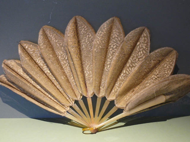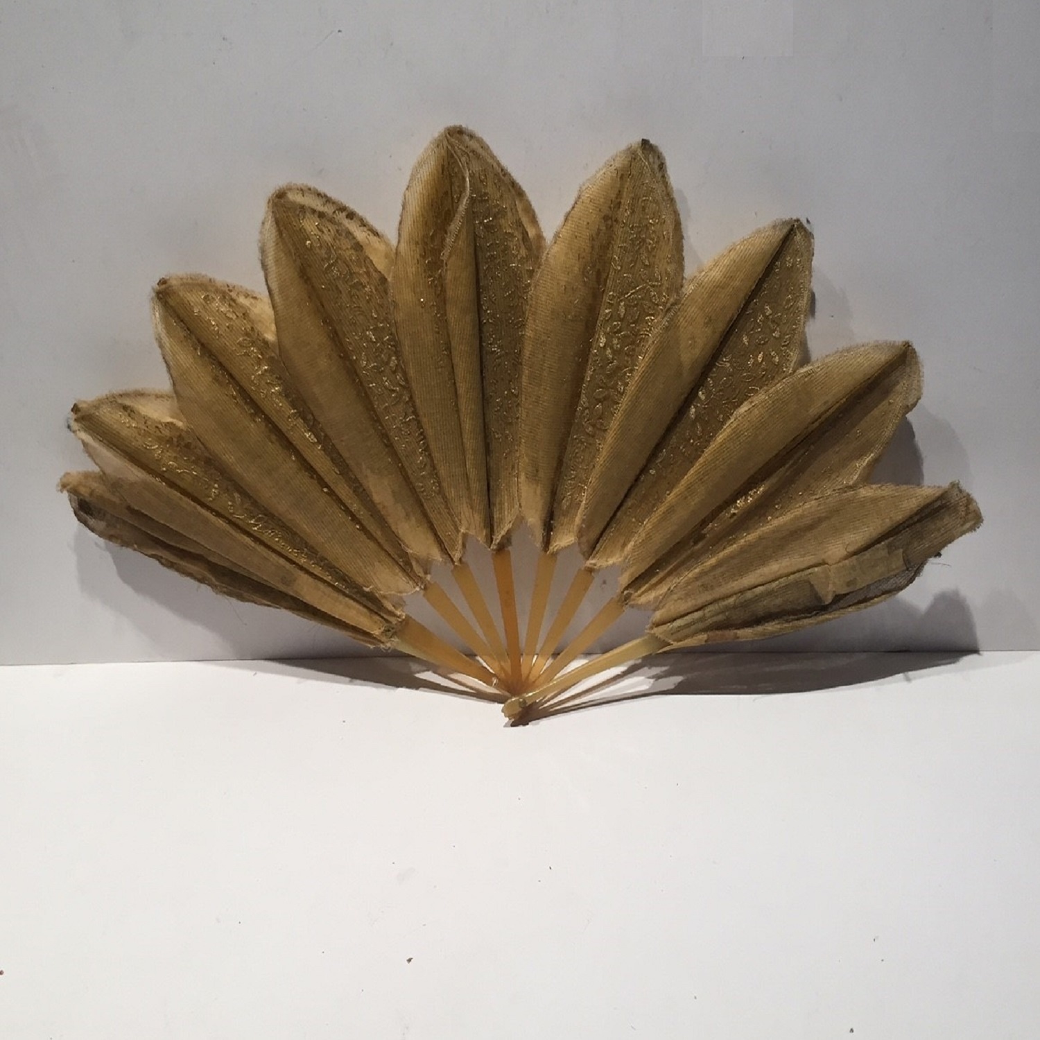 BLOND TORTOISESHELL FAN WITH GOLD FABRIC PETALS 23 CM